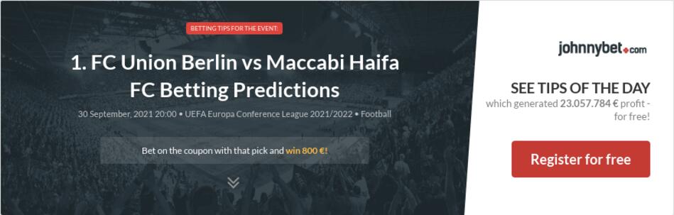 FC Union Berlin vs Maccabi Haifa predictions - 30-Sep-2021 H2H betting tips preview latest results. Union Berlin vs Maccabi Haifa. You will find here exclusively best soccer bets today for Union Berlin vs Maccabi Haifa Over 15 correct score tips 40 both teams to score bet No over and under betting tip Over best 12 Home and much more.